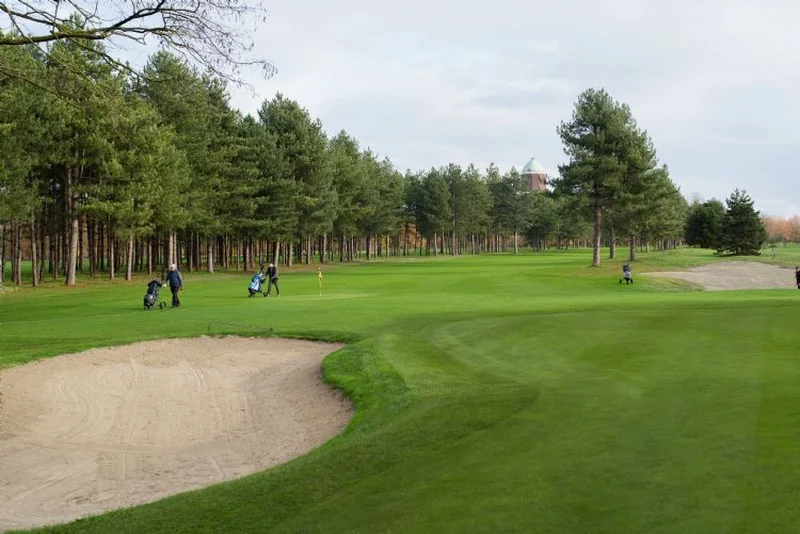 Axelse bos (kunstbos), vlakte met watertoren en wandelpaden rondom de golfbaan